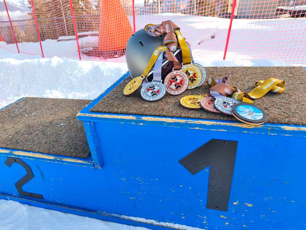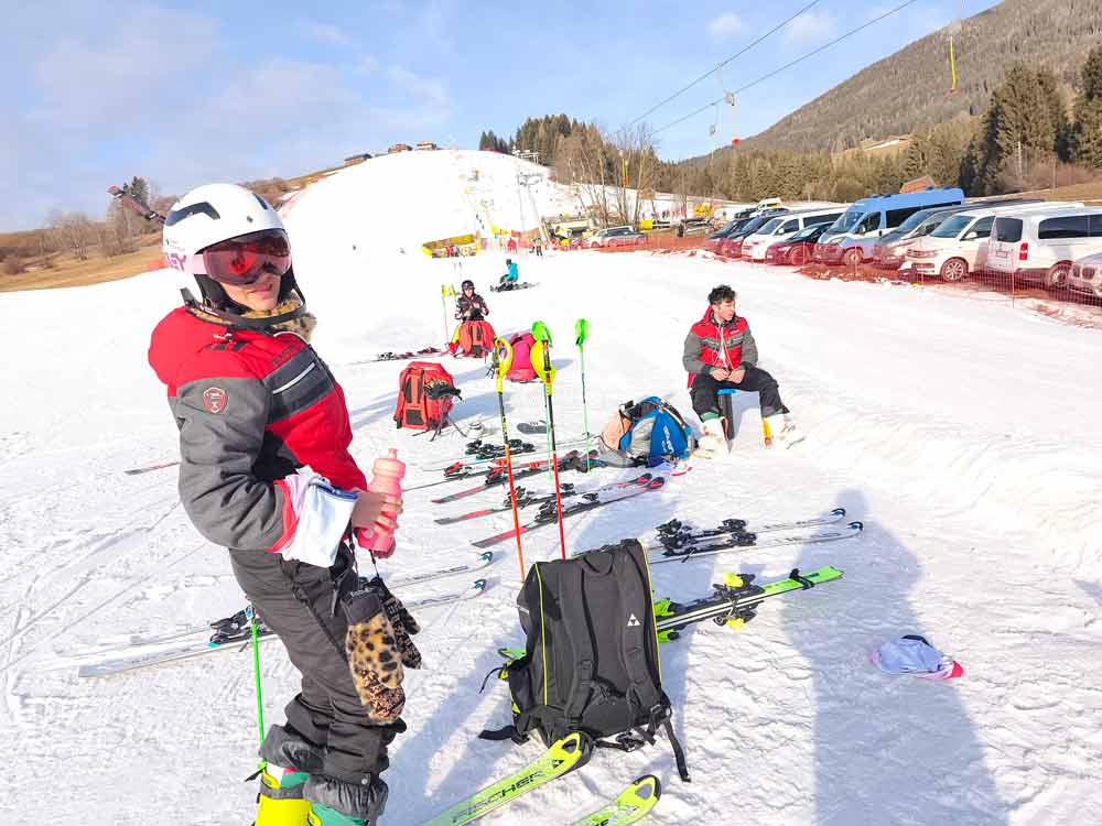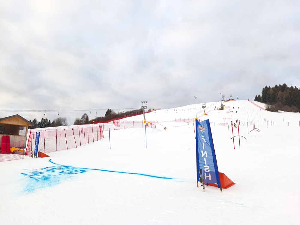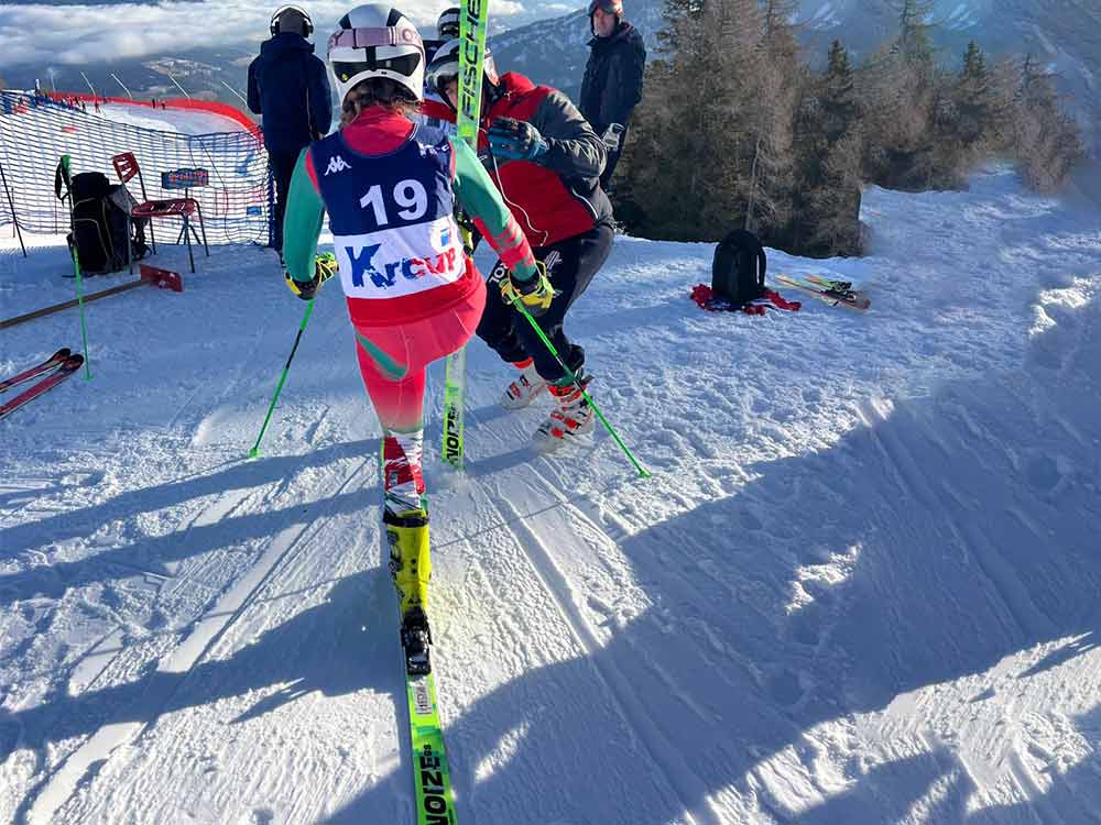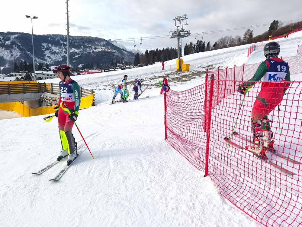 Slalom – Sendo a prova com menor longitude, desnível vertical e distância entre portas, é no entanto a que tem maior complexidade técnica de todas as disciplinas de esqui alpino. É também disputada em duas mangas, num percurso que inclui portas normais, diretas e figuras que incluem portas duplas, triplas e quadruplas. Nesta prova as portas deixam de ser referenciadas com dois piquets e uma bandeira e passam a ser simples, permitindo o contacto do esquiador com as mesmas.