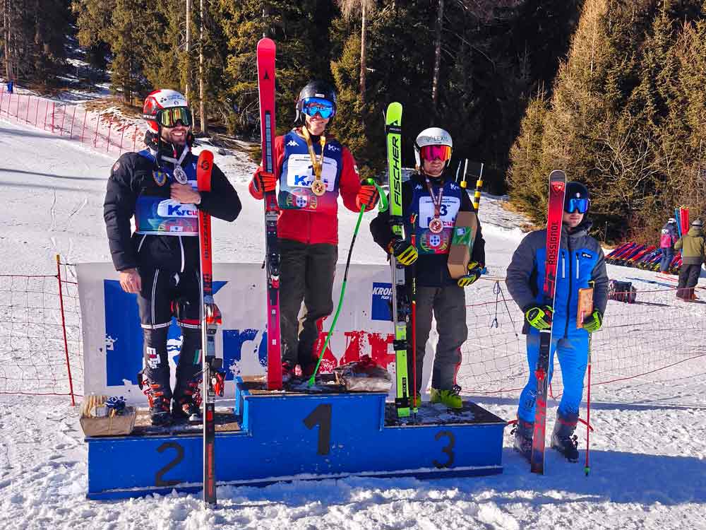 Slalom Gigante – É considerada a prova rainha do esqui alpino, onde se integram os factores técnicos e de velocidade desta modalidade. O desnível vertical e a longitude são menores que as anteriores e a distância entre portas é menor. É disputada em duas mangas cronometradas e o resultado final é o resultado da soma deste tempos, sendo as portas de controlo também referenciadas com duas cores, alternadamente, o vermelho e o azul.